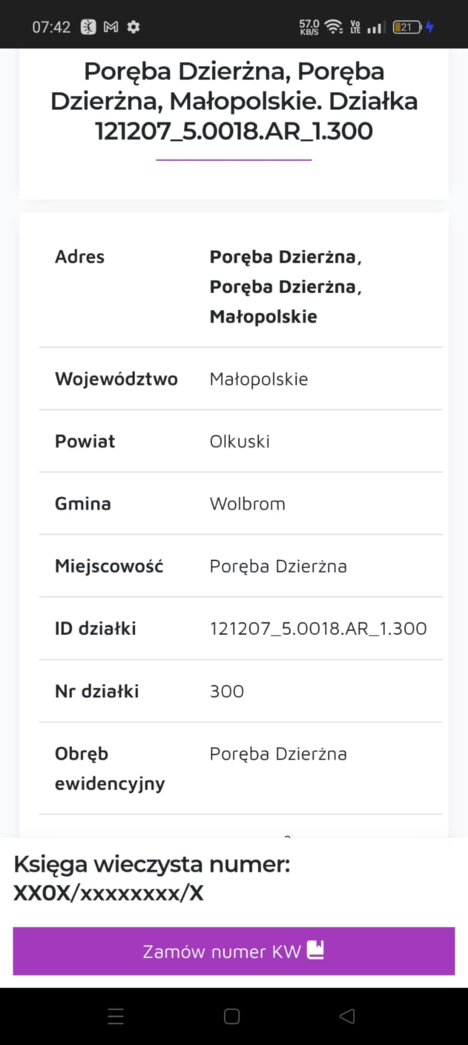 Ogłoszenie 34: Cena 139 000 zł Pole Orne 1.55 ha Poręba Dzierżna, Wolbrom woj. Śląskie