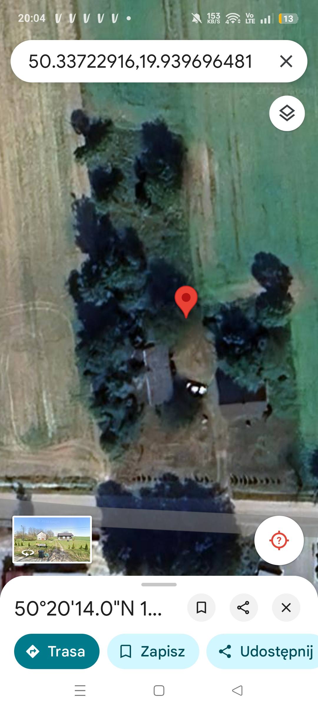 Ogłoszenie nr 54: Cena 135 000 zł Działka Budowlana 19.21 ar w Rzeżuśnia Gmina 32-075 Gołcza woj Małopolskie
