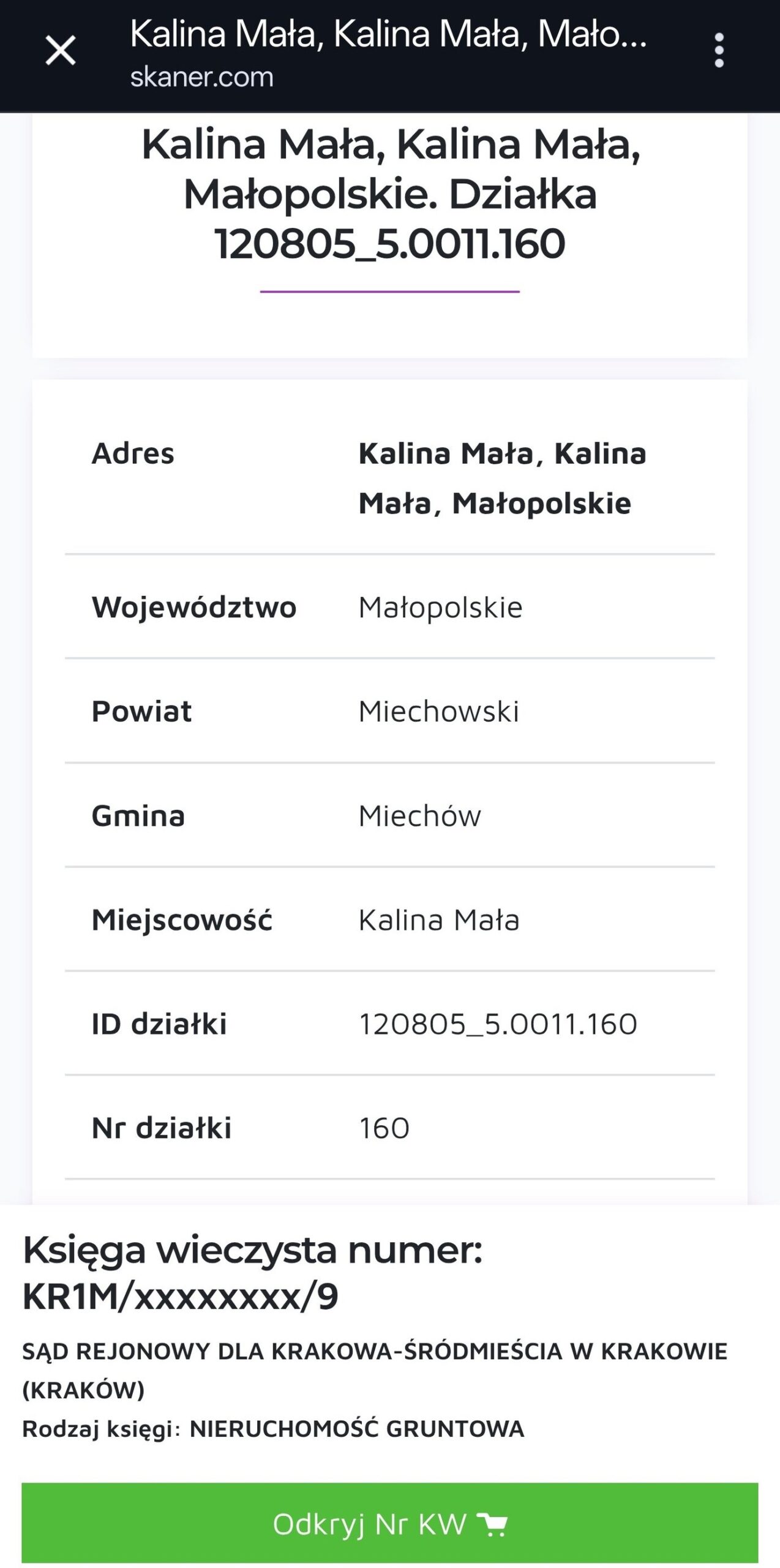 Ogłoszenie nr 66: Cena 55 000 zł Działka Rolna w Kalina Mała pow. Miechowski woj. Małopolskie