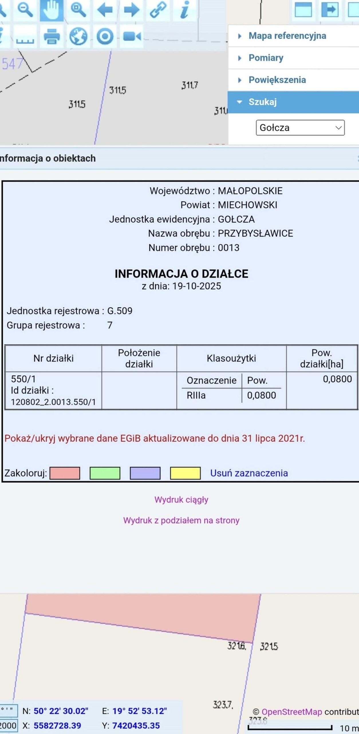 Ogłoszenie nr 68: Cena 159 000 zł Działka Budowlana w Przybysławice Gmina 32-075 Gołcza woj. Małopolskie