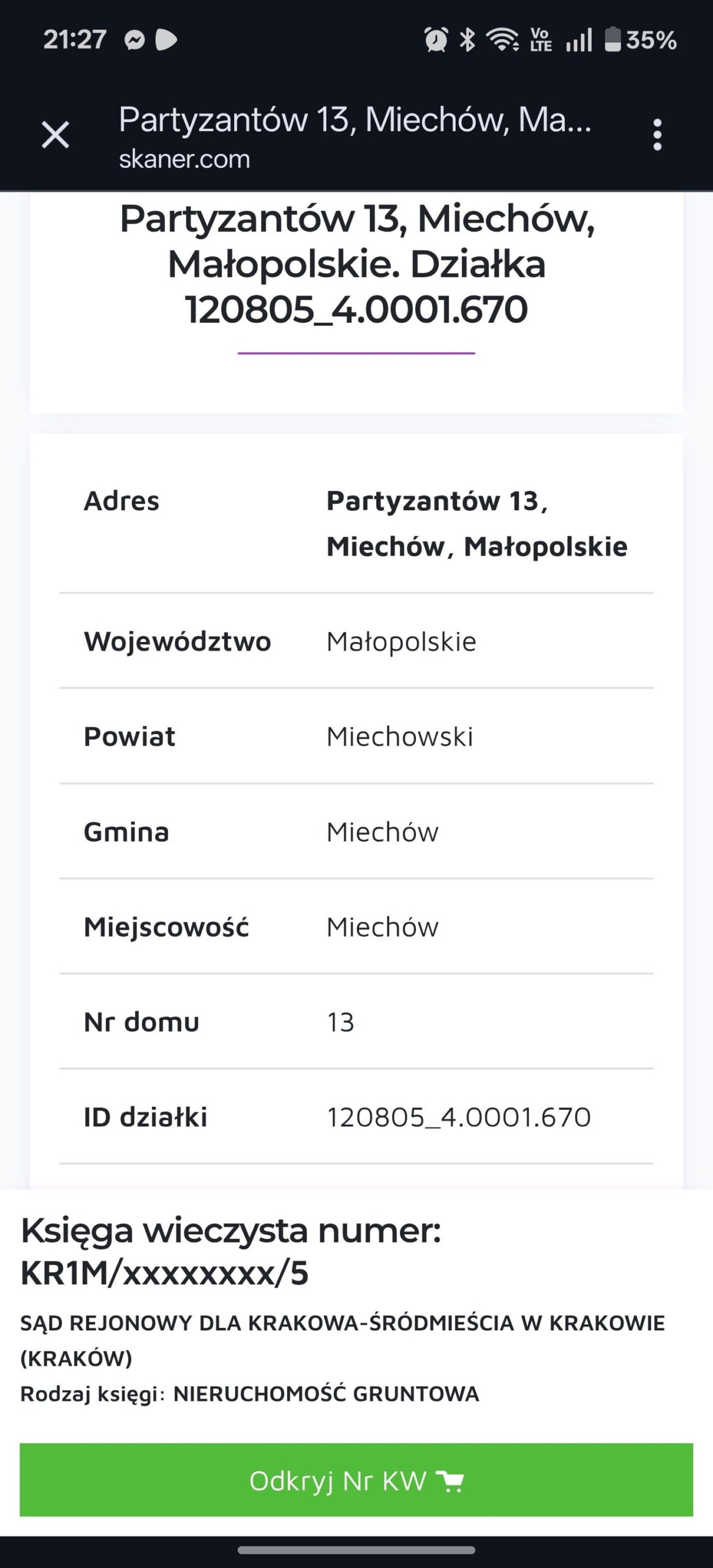 Ogłoszenie nr 74: Cena 160 000 zł Działka Budowlana ul. Partyzantów w Miechowie woj. Małopolskie